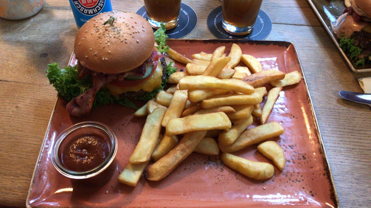 95 km von Weidenthal und ca. 2 Stunden später haben wir unser Ziel erreicht. Burger, Bar & Cafe Bruder Jakob in Sankt Wendel. Kaum sind wir im Gastraum, wurde auch schon für uns eine diagonale Tafel gestellt und die interessanten Speisekarten, welche wirklich keinen Wunsch offen lassen, ausgegeben und wir konnten uns nach unseren Gelüsten austoben.